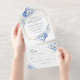 Elegant Dusty Blue Floral Gold Geometric Wedding All In One Invitation