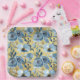 Elegant Dusty Blue Floral & Gold Square Party Paper Plate