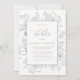 Elegant Dusty Blue Floral Line Art Baby Shower Invitation