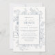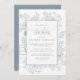 Elegant Dusty Blue Floral Line Art Bridal Shower Invitation