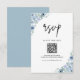 Elegant Dusty Blue Floral QR Code Wedding RSVP Card