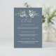 Elegant dusty blue floral details card — perfect for sharing accommodation, transport, and wedding information. Matches the full invitation suite.