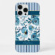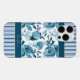 Elegant Dusty Blue Floral White Stripe Monogram iPhone Case