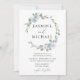 Elegant Dusty Blue Floral Wreath Wedding Invitation
