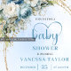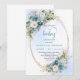 Elegant Dusty Blue Flowers Gold Baby Shower Invite
