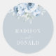 elegant dusty blue flowers wedding classic round sticker