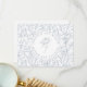 Elegant French classical dusty blue floral rose pattern wedding thank you cards with bride and groom monogram.
