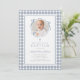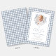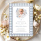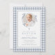 Elegant Dusty Blue Gingham Photo Girl Baptism Invitation. For best results upload a square image of the baby.