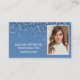 Elegant Dusty Blue Glitter Photo QR Code Business Card