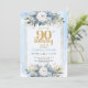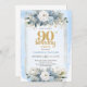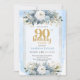 Elegant Dusty Blue Gold 90th Birthday Party Invite