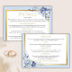 Share all the important wedding details with this elegant detail card, designed to match the Powder Blue & Gold Floral Wedding Suite. Featuring delicate watercolor florals in soft blue tones and luxe gold accents, this insert is perfect for including extra information such as accommodations, transportation, dress code...
