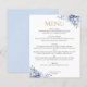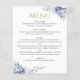 Elegant Dusty Blue Gold Floral Wedding Dinner Menu