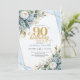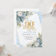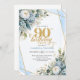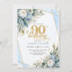 Elegant dusty blue gold frame floral 90th birthday invitation