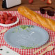 This elegant eucalyptus greenery botanical dusty blue first holy communion paper plate can be personalised with your information in chic typography. Designed by Thisisnotme©