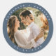 Elegant Dusty Blue Grey Couple Photo Wedding Favour Classic Round Sticker