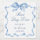 Elegant Dusty Blue Hand Drawn Bow Ribbon Wedding Wine Label