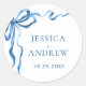 Elegant Dusty Blue Hand Drawn Bow Wedding Classic Round Sticker