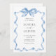 Elegant Dusty Blue Hand Drawn Bow Wedding Invitation