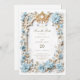Announce your special day with this luxurious wedding invitation featuring exquisite dusty blue hydrangeas and delicate white blooms intertwined with gold baroque-inspired detailing. The ornate faux embossed frame adds a touch of sophistication, while the creamy white background creates a timeless and elegant look. Perfect for weddings with a vintage, romantic, or regal theme. Please note, the gold accents and embossed effects are printed and do not include real metallic foil or raised textures.