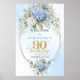 Elegant dusty blue hydrangeas gold welcome sign 90