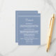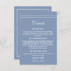 Elevate your Dusty Blue Modern Wedding with this personalised, simple and classic details card, designed to complement your minimalist wedding suite. Featuring elegant white typography in a mix of clean serif and graceful script fonts, arranged against a chic dusty blue background. The clean lines and uncluttered layout create a refined and timeless aesthetic, making this card the perfect addition to your elegant, modern wedding stationery.