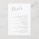 Simple Wedding Enclosure Card with "Details" in an elegant handwritten script at the top left along with your guest information in right alignment in the lower right corner. All design elements are in dusty blue and may be changed in the design editing tool. The chic hand lettering adds a romantic touch to this minimalist design.