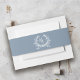 Elegant Dusty Blue Monogram Crest Wedding Invitation Belly Band