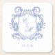 Elegant Dusty Blue Monogram Crest Wedding Square Paper Coaster