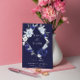 This Save the Date features a stunning arrangement of dusty blue and navy blue roses, framed by a geometric diamond shape. The elegant calligraphy and minimalist design create a timeless and sophisticated look, perfect for a classic wedding.