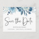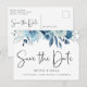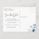 Elegant Dusty Blue Navy Floral Save the Date Announcement Postcard