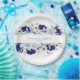 Elegant Dusty Blue Navy Floral Wedding Paper Plate