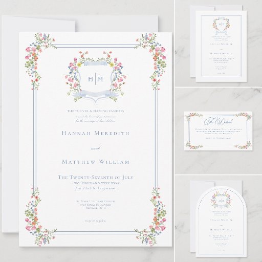 Elegant Dusty Blue Pastel Wildflower Crest WeddingDesigned by Kathe Santillo