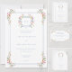 Step into a world of timeless elegance with our exquisite Baroque wildflower wedding invitation. A regal crest, adorned with your initials, sits on the back flap, encircled by soft pastel watercolor blooms and a delicate ribbon. Perfect for couples who seek an invitation that whispers luxury, romance, and the charm of old-world grandeur. Let your wedding begin with a design as breathtaking as the day itself. Created by Simply Farmhouse Press.