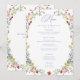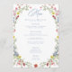 Step into a world of timeless elegance with our exquisite Baroque wildflower wedding menu. A wreath of soft pastel watercolor blooms surrounds the menu details which appear in dusty blue, in sophisticated harmony. Perfect for couples who seek an invitation that whispers luxury, romance, and the charm of old-world grandeur. Let your wedding begin with a design as breathtaking as the day itself. Created by Simply Farmhouse Press.