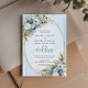 Set the tone for an unforgettable celebration with this elegant watercolor wedding invitation, beautifully designed with dusty blue florals, soft white peonies, and delicate eucalyptus