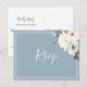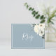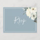 This elegant simple dusty blue RSVP postcard features a watercolor ivory floral design with elegant script font.
