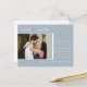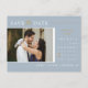This save the date engagement announcement invitation postcard features elegant calligraphy and simple sans serif typography font with a photo and QR code on a dusty blue background with faux gold lines, gold heart ring, and black/white text for a clean minimalist and modern look, which is a beautiful way to tell your guests to inform about your upcoming wedding. Announce to your family and friends you are getting married with this invitation and add a personal touch with beautiful pictures of you and your soon-to-be better half. The simplicity of this design adds a touch of elegance to your wedding save the date invitation cards. It works well with many wedding themes and definitely a great addition to your wedding. Just customise the names and wording in a few easy steps and personalise the invitation postcard with your photo of the happy couple and replace the QR Code with yours.