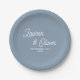 Elegant Dusty Blue Script Minimalist Wedding Paper Plate