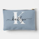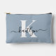 Elegant Dusty Blue Script Monogram Accessory Pouch