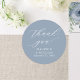 Elegant Dusty Blue Script Wedding Thank You Classic Round Sticker