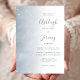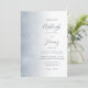 This elegant modern wedding invitation features a dusty blue gradient image of soft swirling shapes and subtle sparkles. The customisable text combines dusty blue handwriting, copperplate and italic fonts. The reverse side features a matching design.