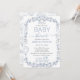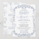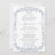 Elegant Dusty Blue Toile Floral Boy Baby Shower Invitation