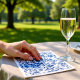 Featuring a classic blue toile botanical pattern inspired by vintage European textiles, this sophisticated design brings refined charm to your table décor. The delicate dusty blue floral illustrations on a soft white background create a romantic and elegant atmosphere, perfect for garden weddings, classic celebrations, bridal showers, or engagement parties.