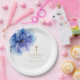 Elegant Dusty Blue Watercolor Floral Baptism Paper Plate
