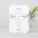 This sophisticated vintage Baroque wedding invitation boasts a white backdrop, beautifully enhanced with soft dusty blue floral details and a romantic gold rope heart. Customise it by adding a QR code for RSVP and your wedding website for additional information. A stunning fusion of timeless elegance and gentle, romantic charm, it creates the perfect introduction to a refined and memorable celebration.