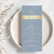 Elevate your wedding with this simple, contemporary, chic and elegant dusty blue wedding menu card. Featuring a minimalist design, personalised monogram, and sophisticated gold accents, it adds a modern, refined touch to your special day.