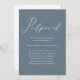 Elegant change the date wedding postponement announcement. This dusty blue and white announcement is a chic way to let invited guests know that your wedding date is being rescheduled due to unforeseen circumstances.