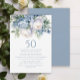 Elegant Dusty Blue White Floral 50th Birthday Invitation