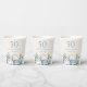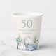 Elegant Dusty Blue White Floral 50th Birthday Name Paper Cups