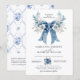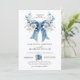 Timeless dusty blue wedding invitation with a romantic oversized bow, delicate watercolor florals in soft blues/whites, and elegant white rose accents. Classic calligraphy layout for easy personalization of names, date, time, venue & RSVP. Perfect "something blue" for sophisticated, romantic weddings — airy, luxurious, and fully customizable! 💙🤍